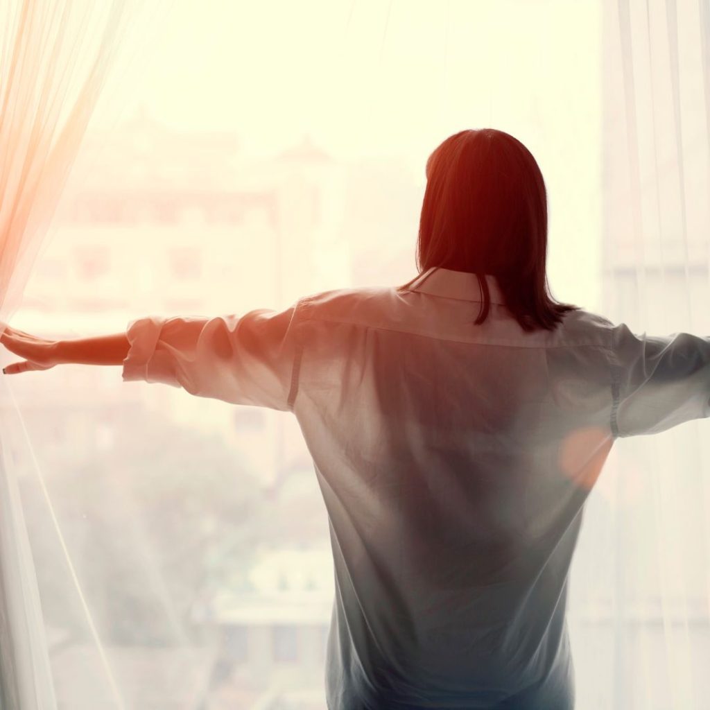 快晴の空を見上げ、観葉植物を愛でるように、小さな幸せを見つけては感謝する毎日。